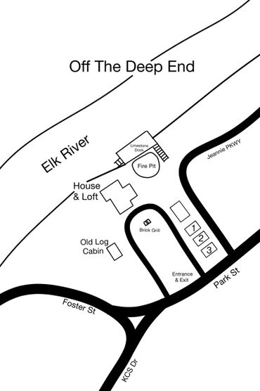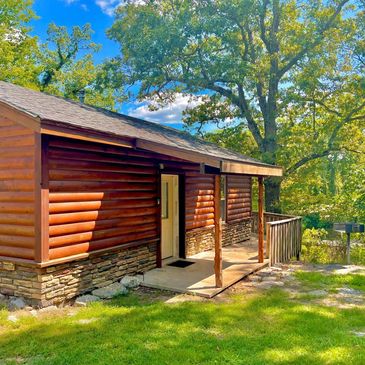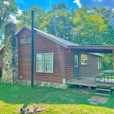 Cabins & Vacation Rentals with river access, a communal limestone dock, fire pit and club house.